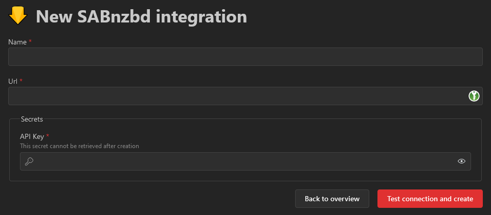 It is not allowed to create an integration without passing the test. This is to ensure that you minimize the amount of broken applications on your Homarr instance. The test and create button will perform a network request to the application and authenticate if required.